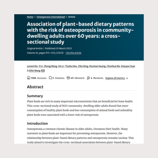 23. Ballarin RS, Lazzarin T, Minicucci MF, Azevedo PS, dos Santos Nunes Nogueira V, Schoberer D, et al. Vegetarian and Vegan Diets and the Risk of Hip Fracture in Adults: A Systematic Review and Meta-analysis. Nutr Rev. 2025 Nov 23. doi:10.1093/nutrit/nuaf241